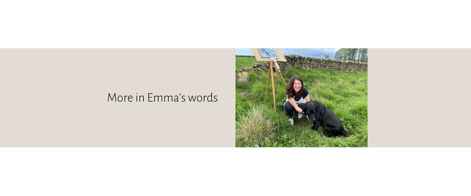 “I am never just looking at Emma’s paintings, I’m pulled in, standing in the midst of them, feeling it, hearing it, a part of it” …… “I feel the ferocity of the wild weather, the energy, the vitality. I am up in the fells, feeling strong and at one with the wild elements, alone, but not alone, part of it all”.